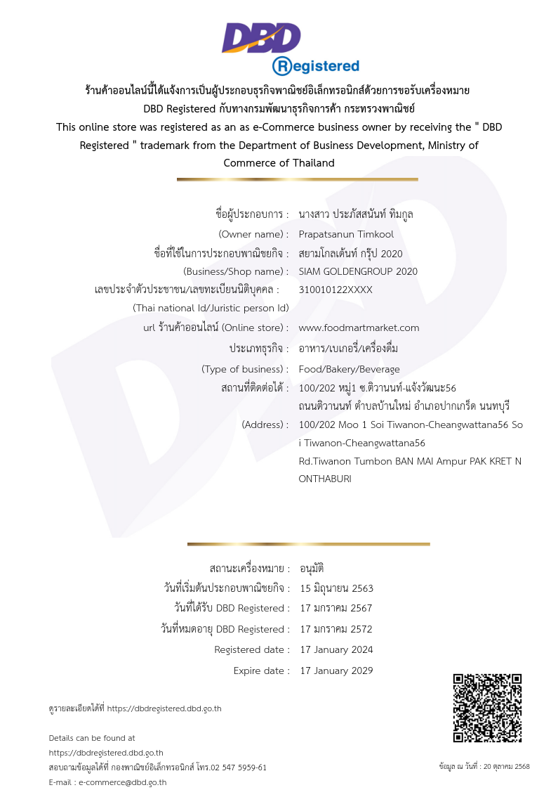 ทางเรามุ่งเน้นการบรรลุมาตรฐานสูงสุดในการผลิตและการได้รับใบรับรองที่จำเป็นทั้งหมดเช่น GMP, GAP และ HACCP เราประสบความสำเร็จในการสร้างระบบการจัดการธุรกิจและห่วงโซ่อุปทานที่มีประสิทธิภาพโดยการทำสัญญากับฟาร์มท้องถิ่นทั่วประเทศไทย